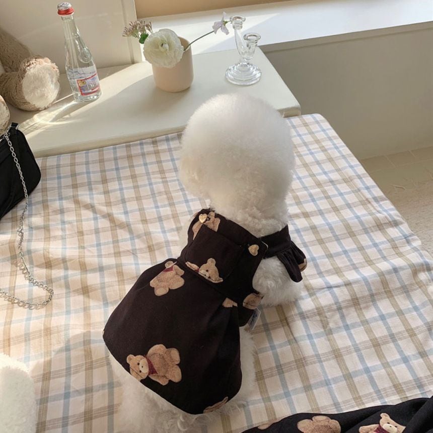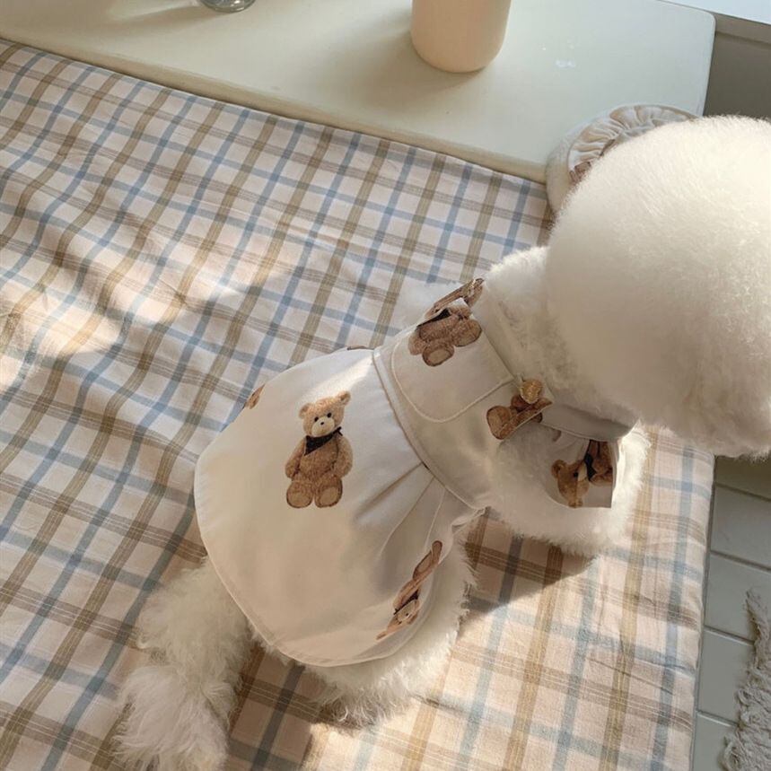 ペットとお出かけするのが楽しくなる、可愛らしいデザインのペット服ワンピースが新登場!熊柄のホワイトとブラックの2色展開で、どちらも高品質な生地で作られています。ペットの着心地を考えて設計されたサイズ展開も豊富で、春夏のお出かけにぴったりです。